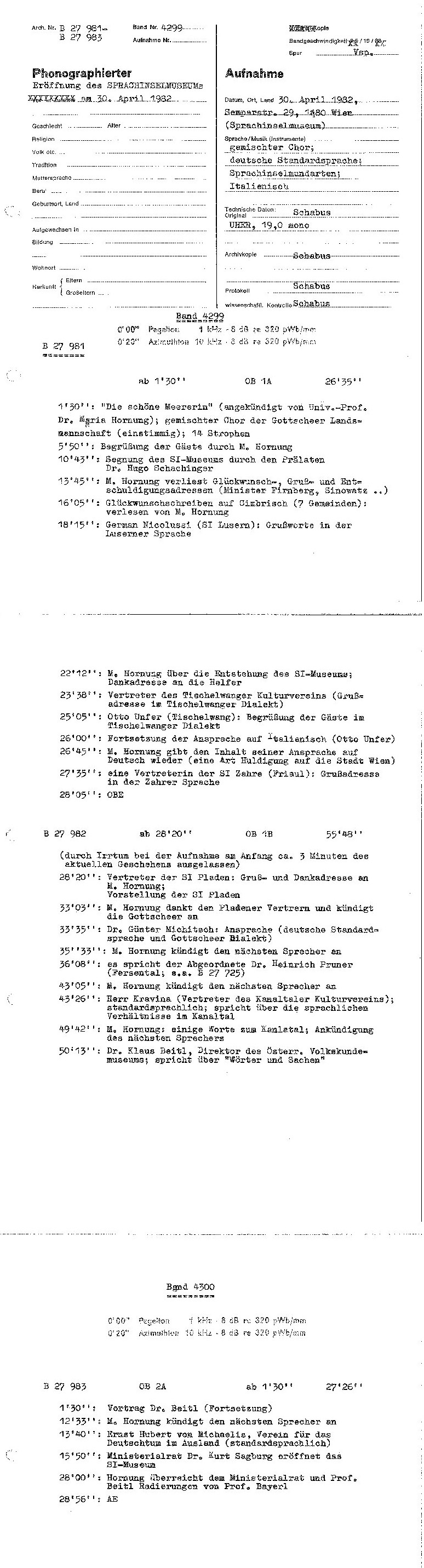 (Vienna, 30.04.1982; responsabile: Dr. Wilfried Schabus)