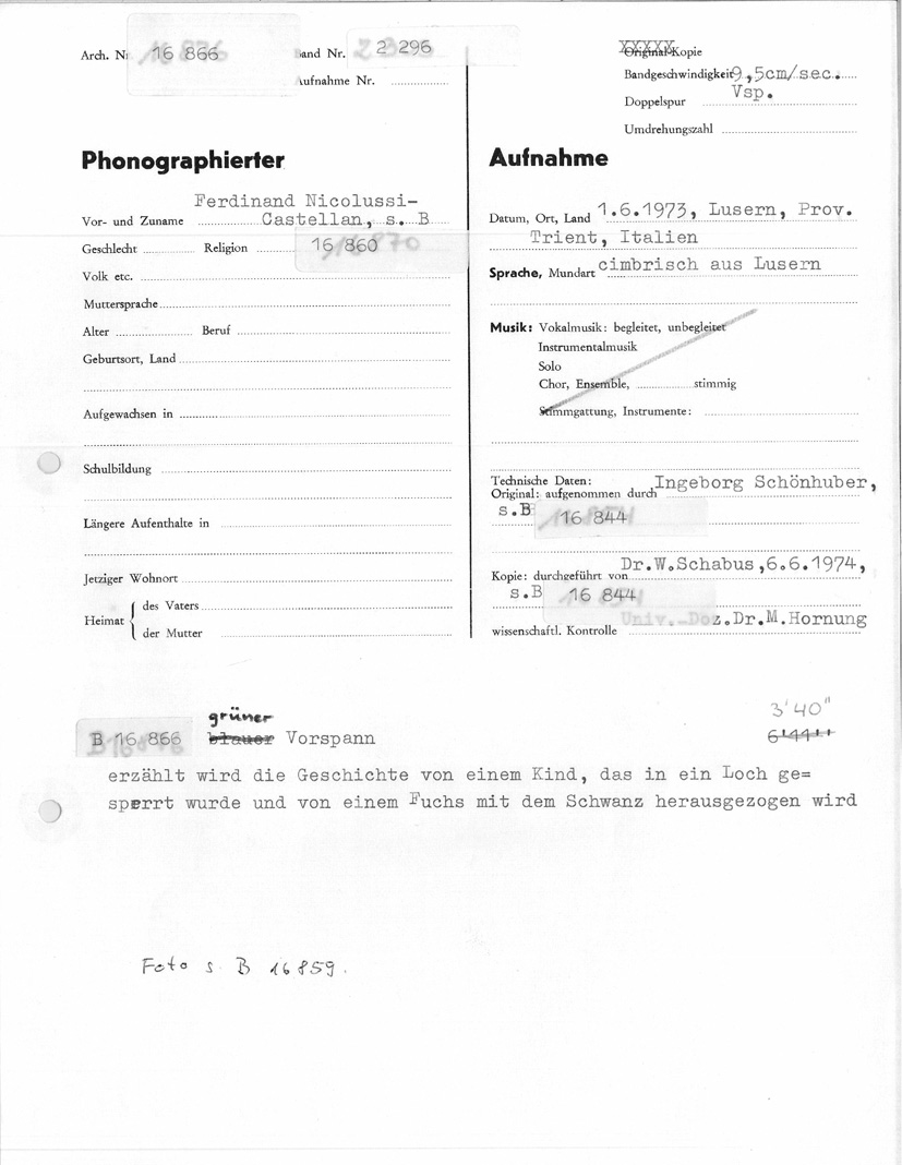 (Luserna, 01.06.1973; responsabili: I. Schönhuber; Dr. Wilfried Schabus; Prof. Maria Hornung)