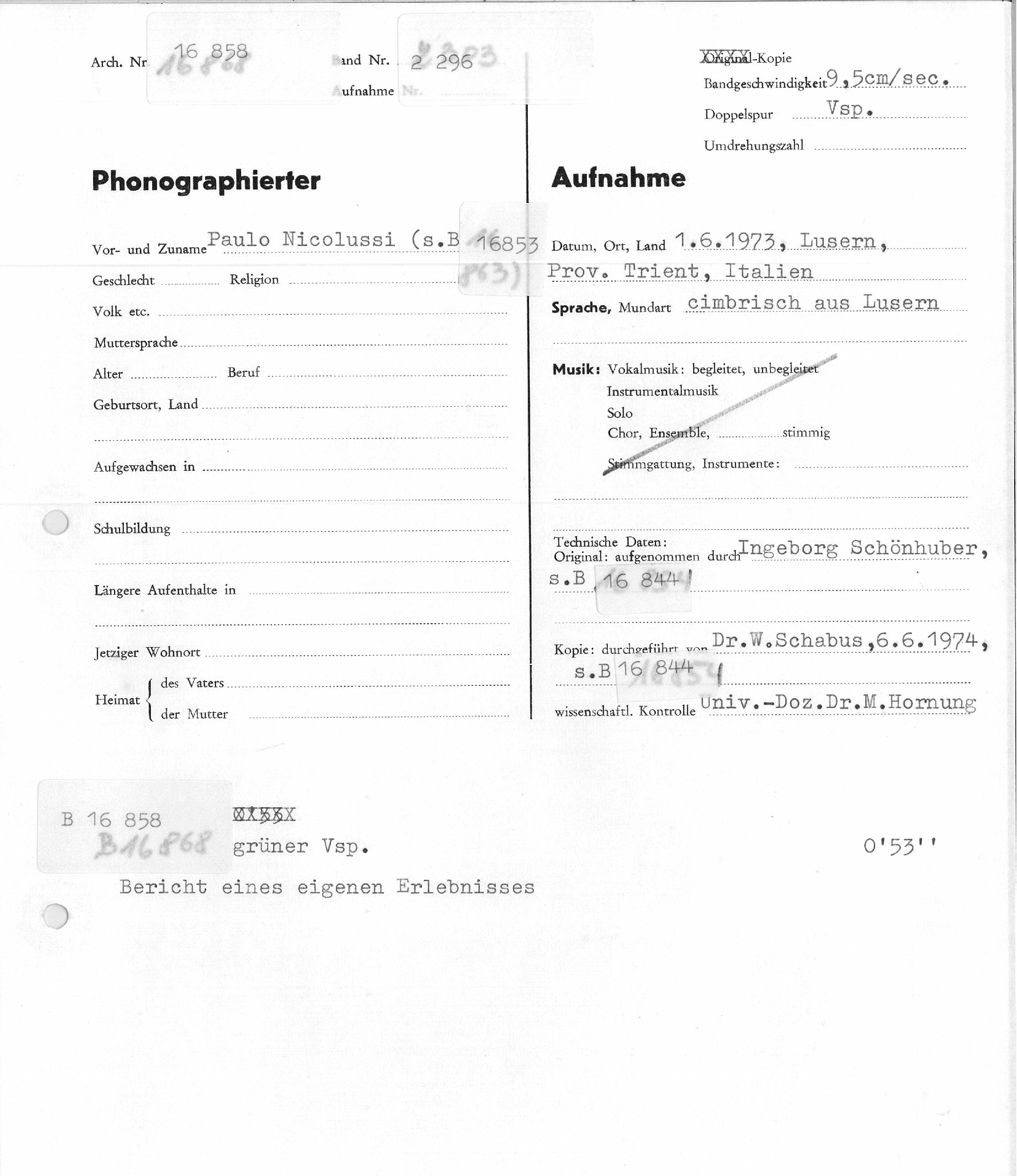 (Luserna, 01.06.1973; responsabili: I. Schönhuber; Dr. Wilfried Schabus; Prof. Maria Hornung)