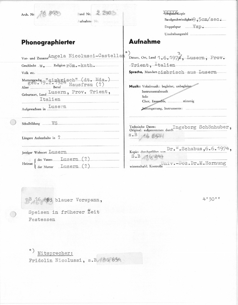 (Luserna, 01.06.1973; responsabili: I. Schönhuber; Dr. Wilfried Schabus; Prof. Maria Hornung)